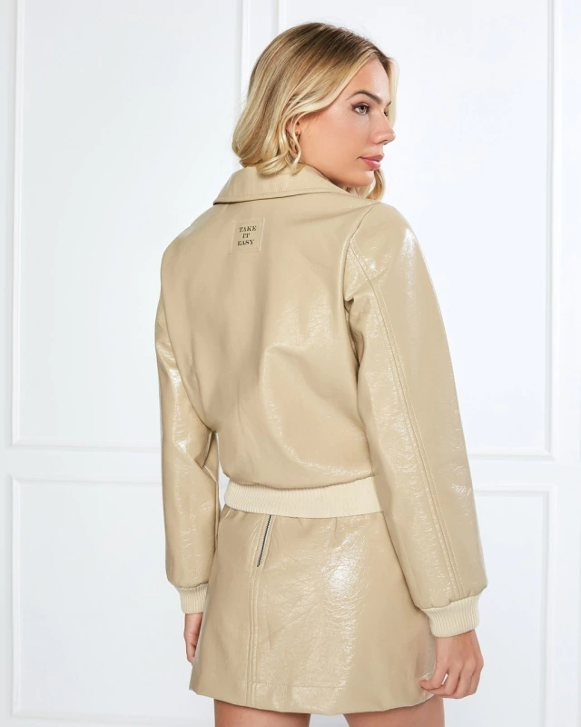 MINI SAIA EM VINIL 100% POLIESTER E 100 % POLIURETANO. FORRO EMBUTIDO EM CETIM 94% POLIESTER E 6% ELASTANO.